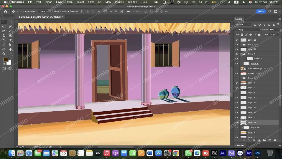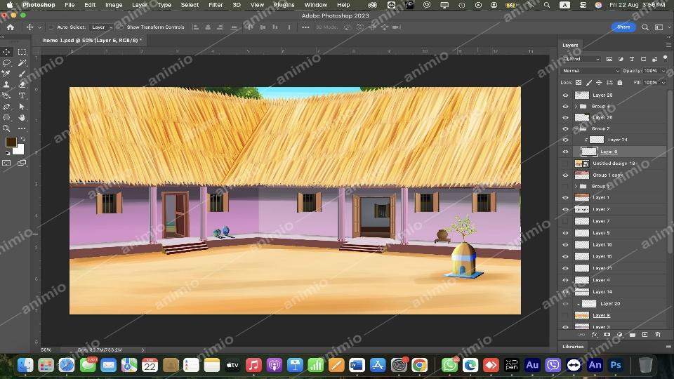 Just import the PSD file into Adobe Photoshop or your preferred animation pipeline, customize as needed, and your village scene is ready for production.